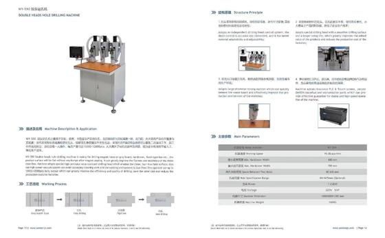 The DG-590 Double Heads Hole Drilling Machine is designed for precision drilling of magnet holes on grey board, hardcover, and book-type boxes. This machine ensures a perfectly flat surface after magnet pasting, significantly enhancing the flatness and aesthetics of finished cases/boxes.